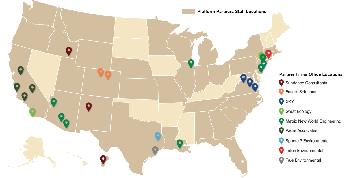 The True family of companies employs more than 700 staff at locations and project sites across the Nation, as well as Canada. The map below shows states in which our staff resides, as well as the True Platform Partner Firms’ primary office locations.
